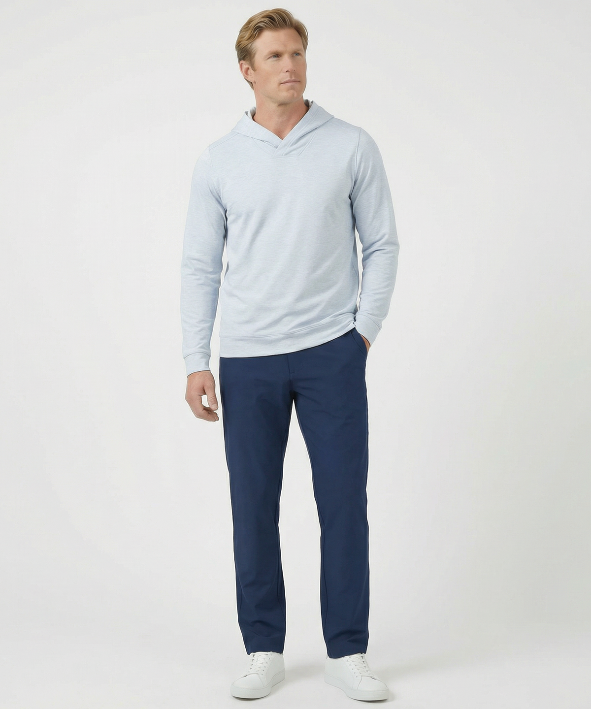 Built for on-course performance and everyday comfort, this performance hoodie offers four-way stretch mobility, moisture-wicking comfort, UPF 50+ sun protection, and odor resistance. The pullover design layers easily in cool conditions and delivers clean, athletic style on or off the course.