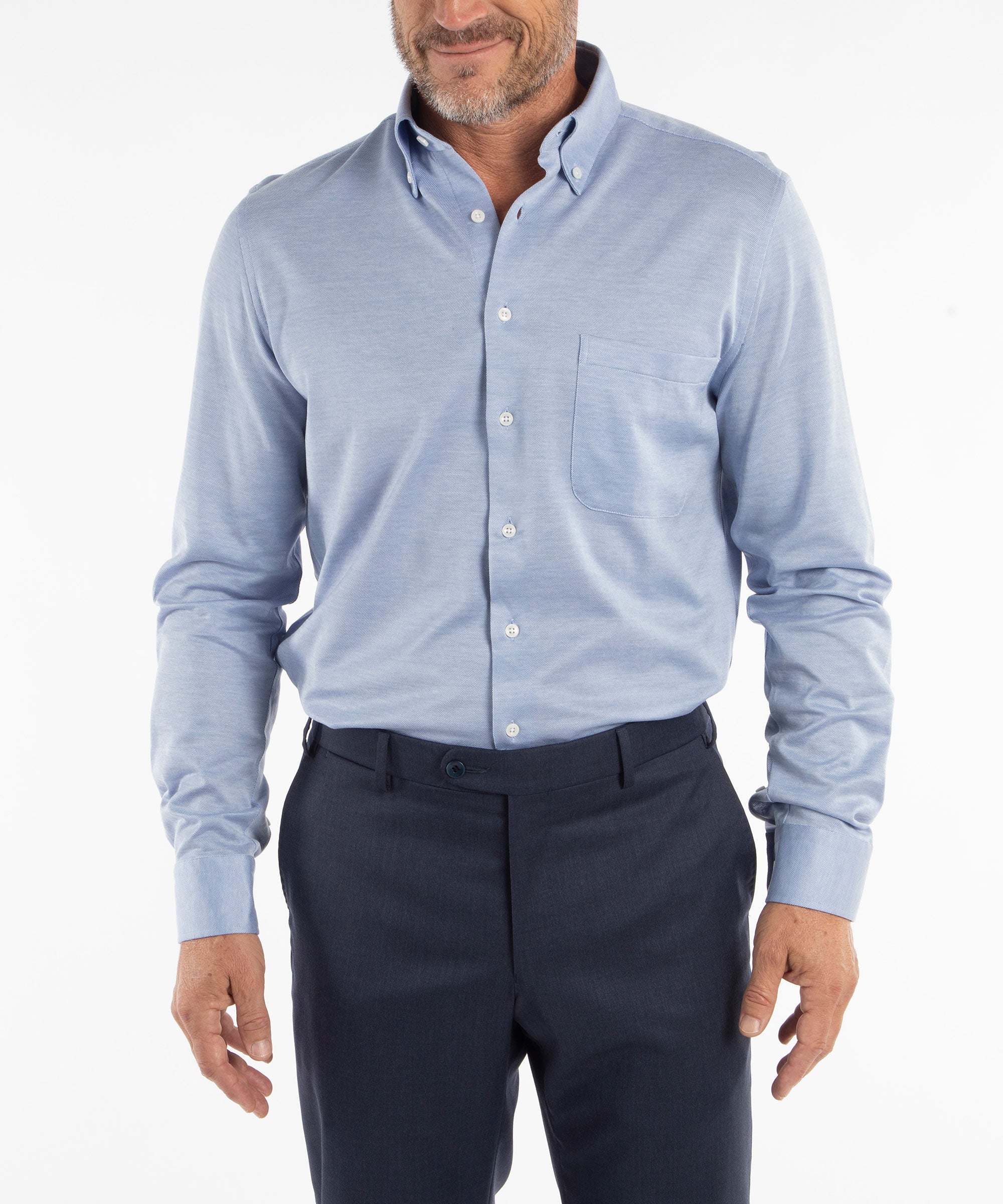 Signature Cotton Knit Long-Sleeve Button-Down Sport Shirt