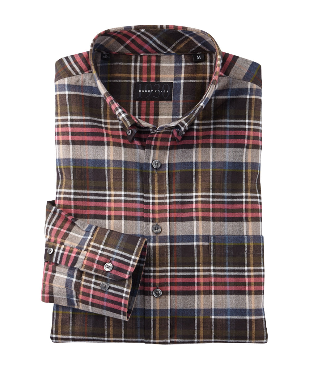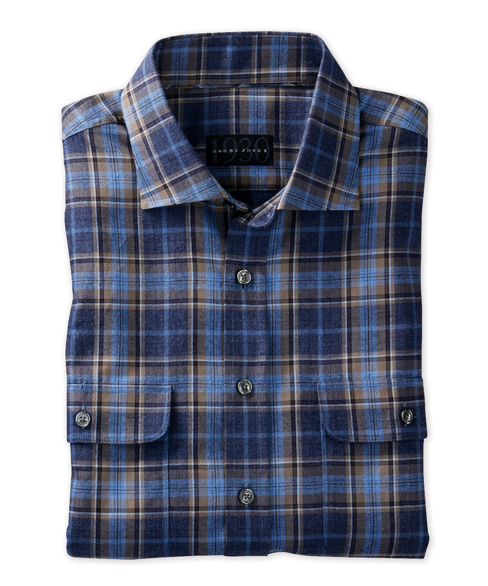 Charles Brushed Cotton Plaid Long Sleeve Sport Shirt