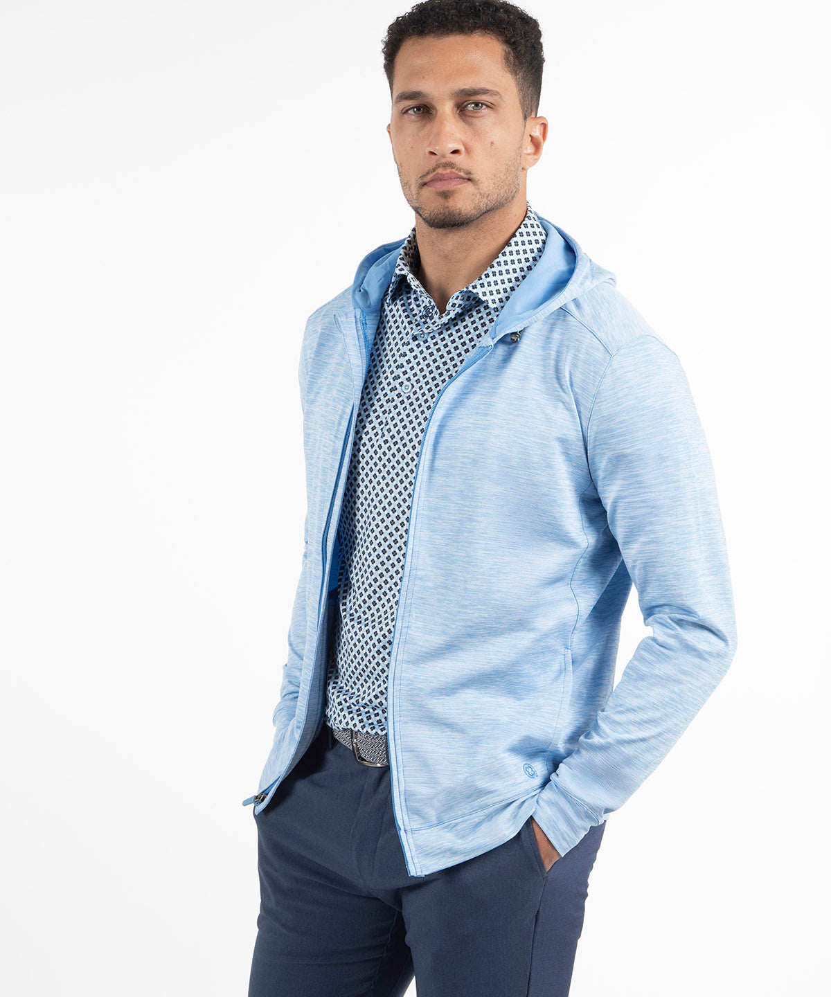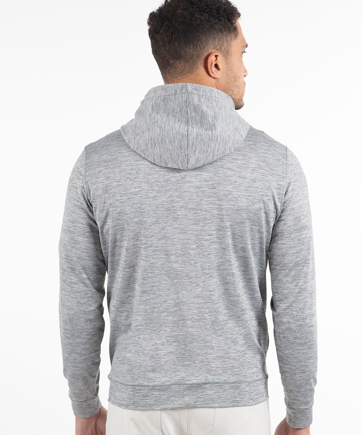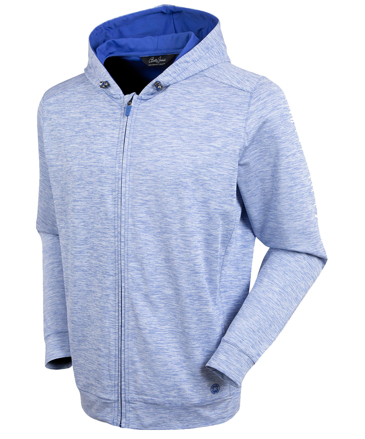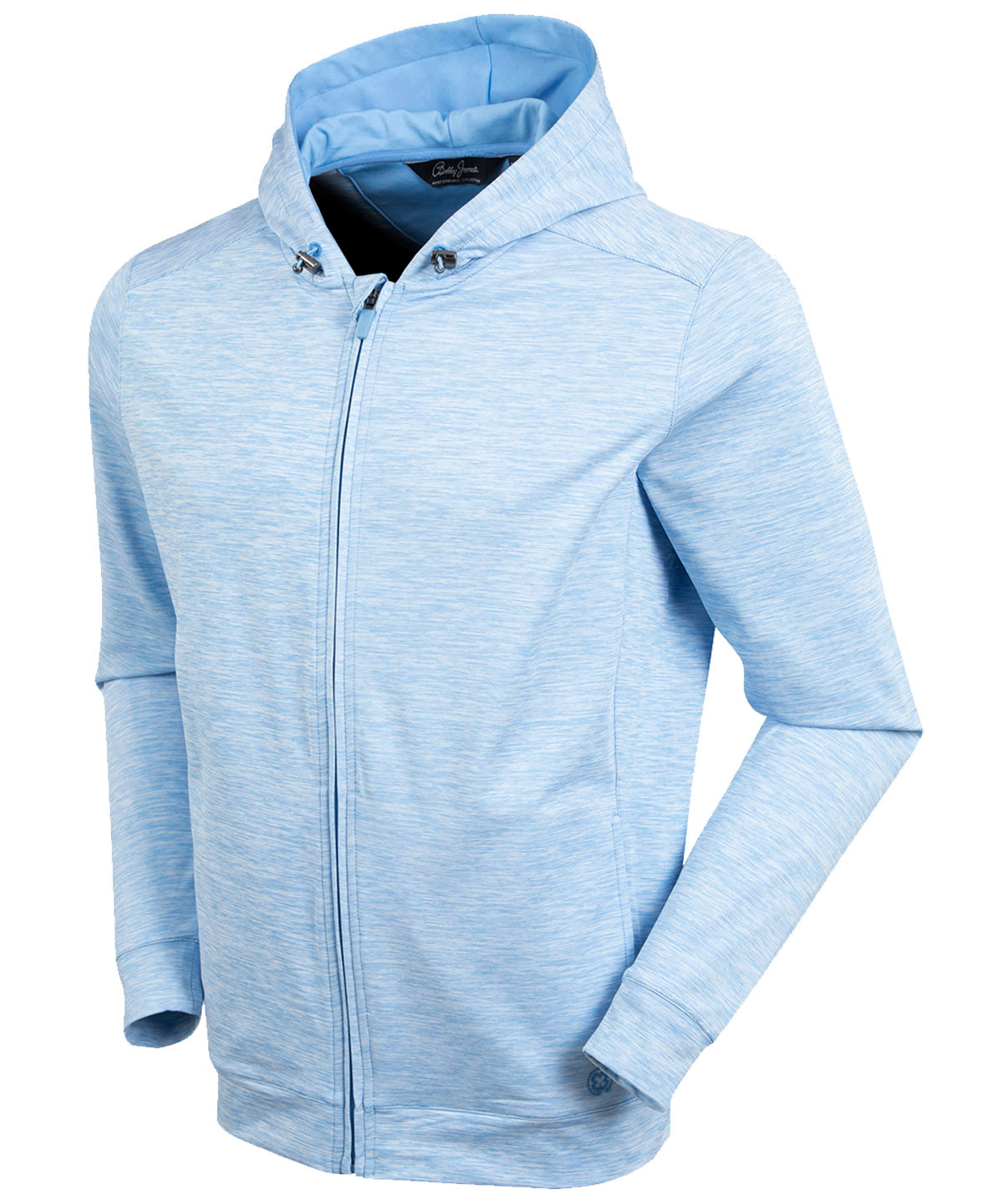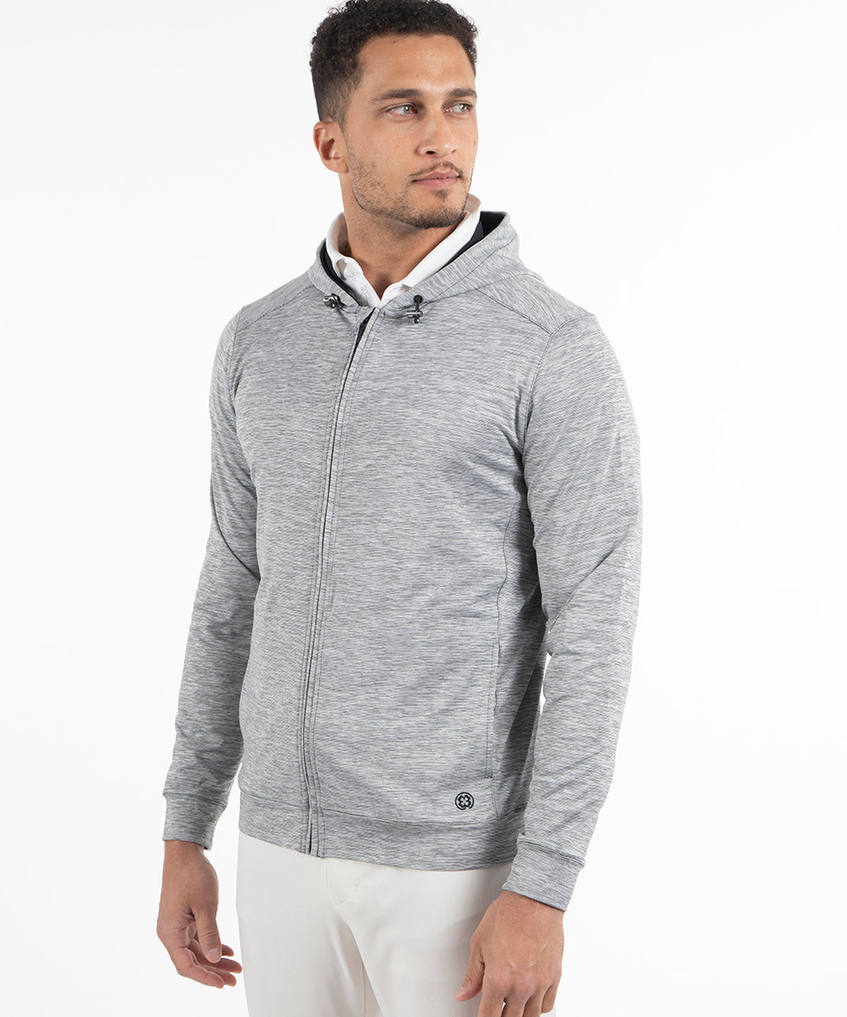 Versatile, lightweight, and built for performance, the Performance Clubhouse Full-Zip Hoodie delivers comfort and protection with a sleek, modern design. Crafted from a premium blend of 88% polyester and 12% spandex, this hoodie features a heathered fabric texture, offering a refined, athletic look that transitions effortlessly from the course to casual wear.