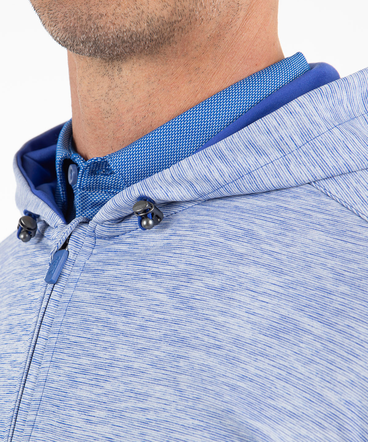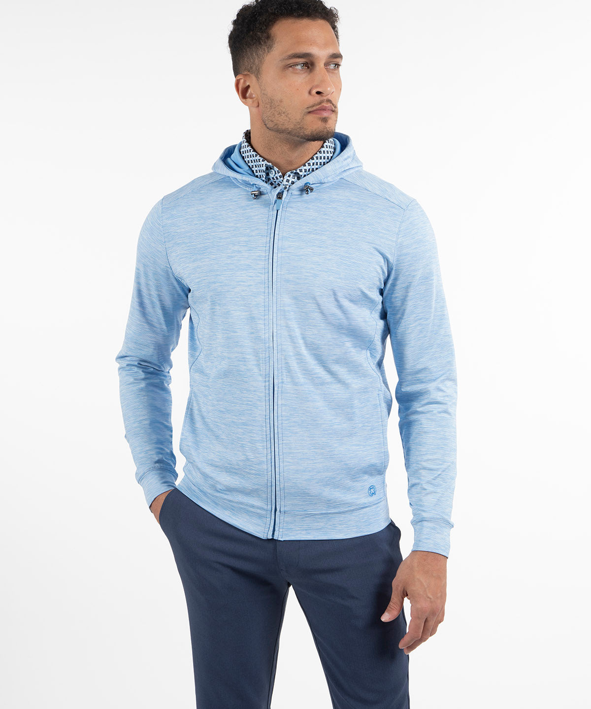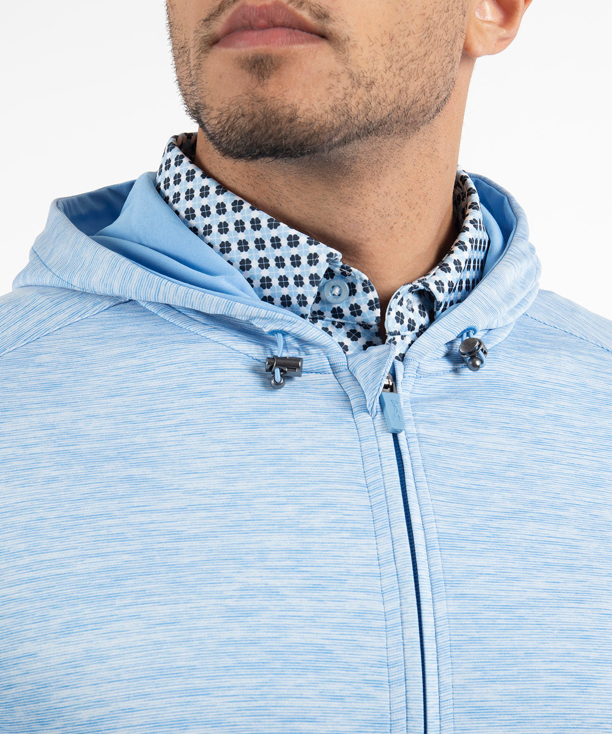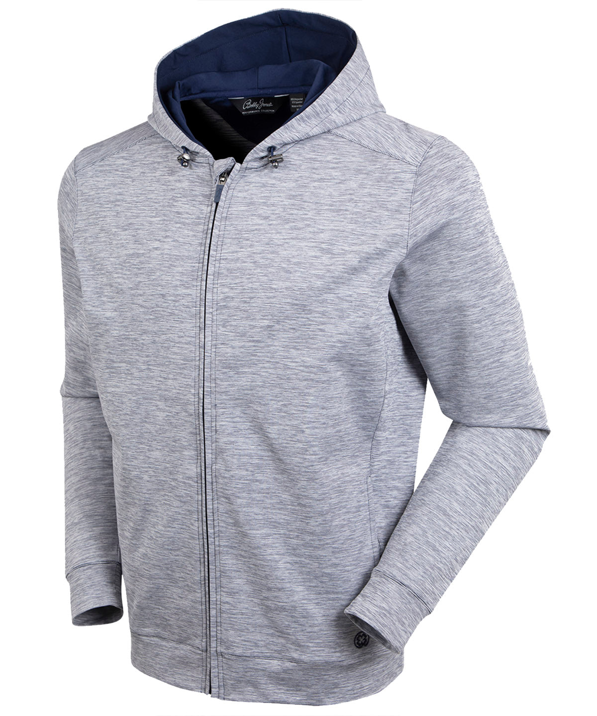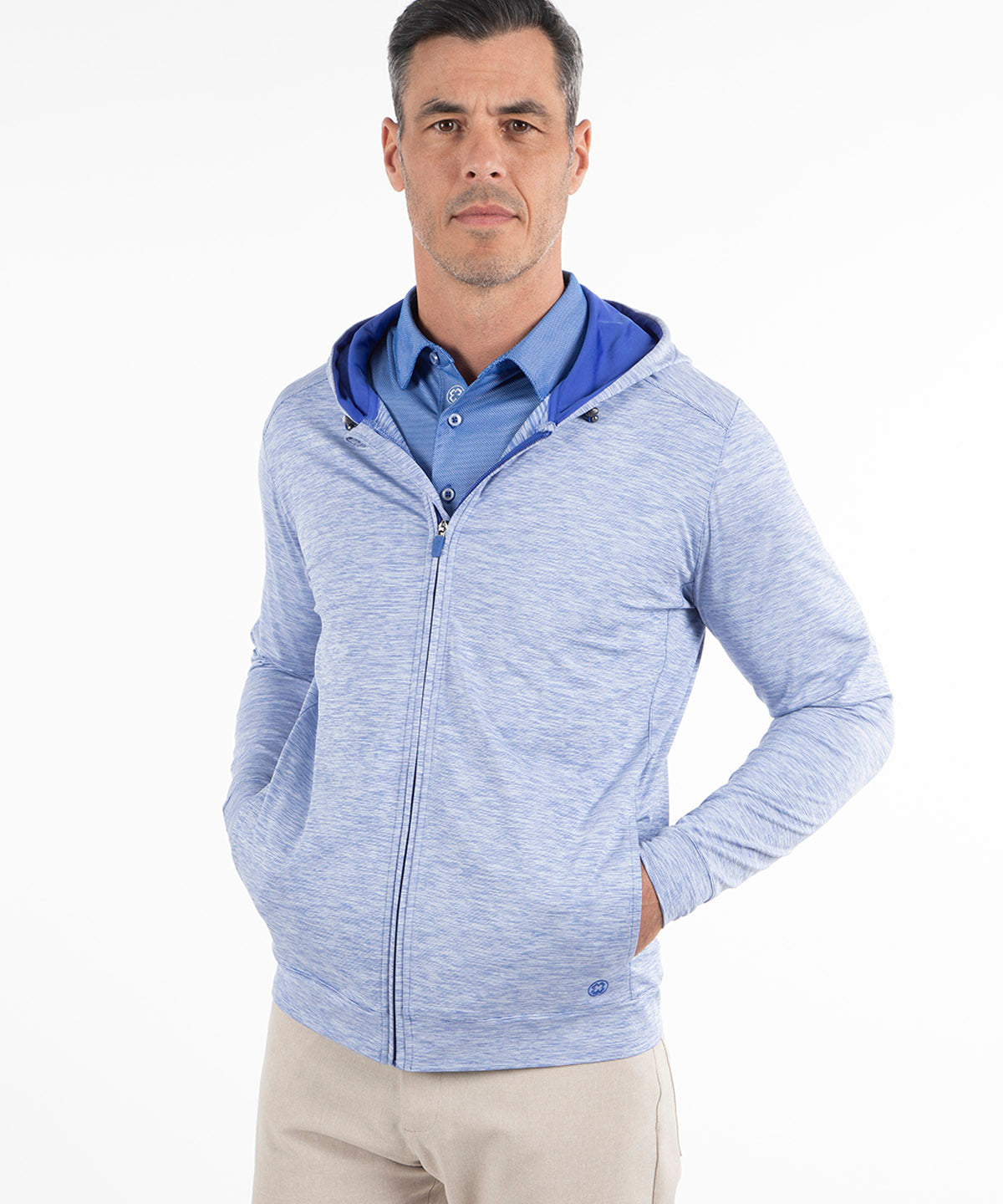 Versatile, lightweight, and built for performance, the Performance Clubhouse Full-Zip Hoodie delivers comfort and protection with a sleek, modern design. Crafted from a premium blend of 88% polyester and 12% spandex, this hoodie features a heathered fabric texture, offering a refined, athletic look that transitions effortlessly from the course to casual wear.