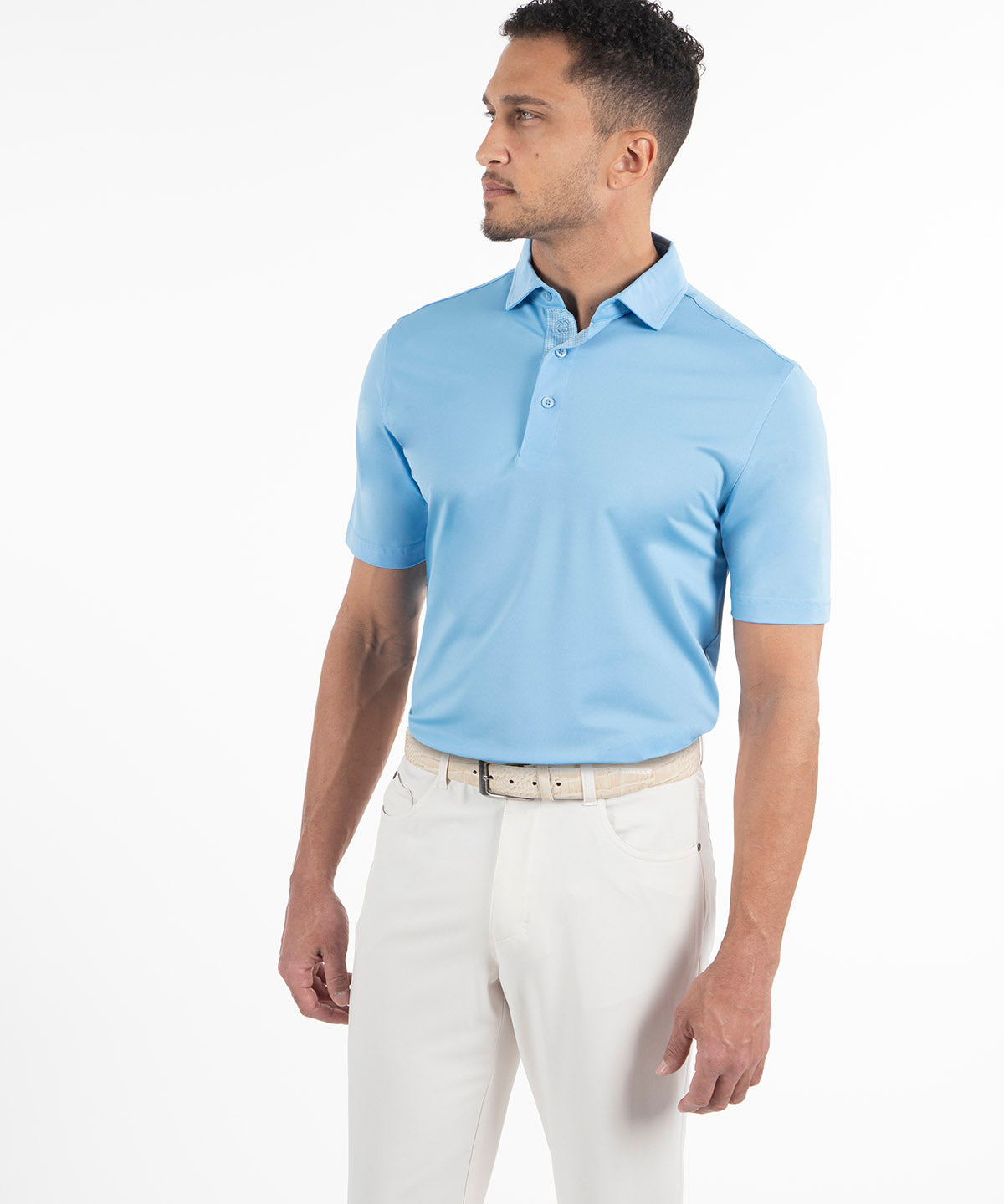The micro piqué fabric enhances airflow, while built-in UPF 50+ protection shields you from harmful UV rays during long days on the course or under the sun. An anti-microbial treatment at the yarn level ensures lasting freshness and durability, making this polo a go-to for effortless wear.