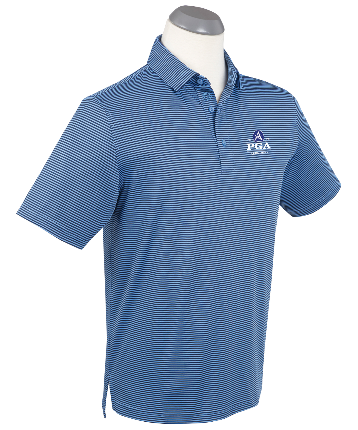 This men’s performance tonal striped golf polo features four-way stretch for easy movement, moisture-wicking and odor resistance to stay fresh, and UPF 50+ sun protection. Lightweight and breathable—ideal as a short-sleeve performance golf shirt for long days on the course.