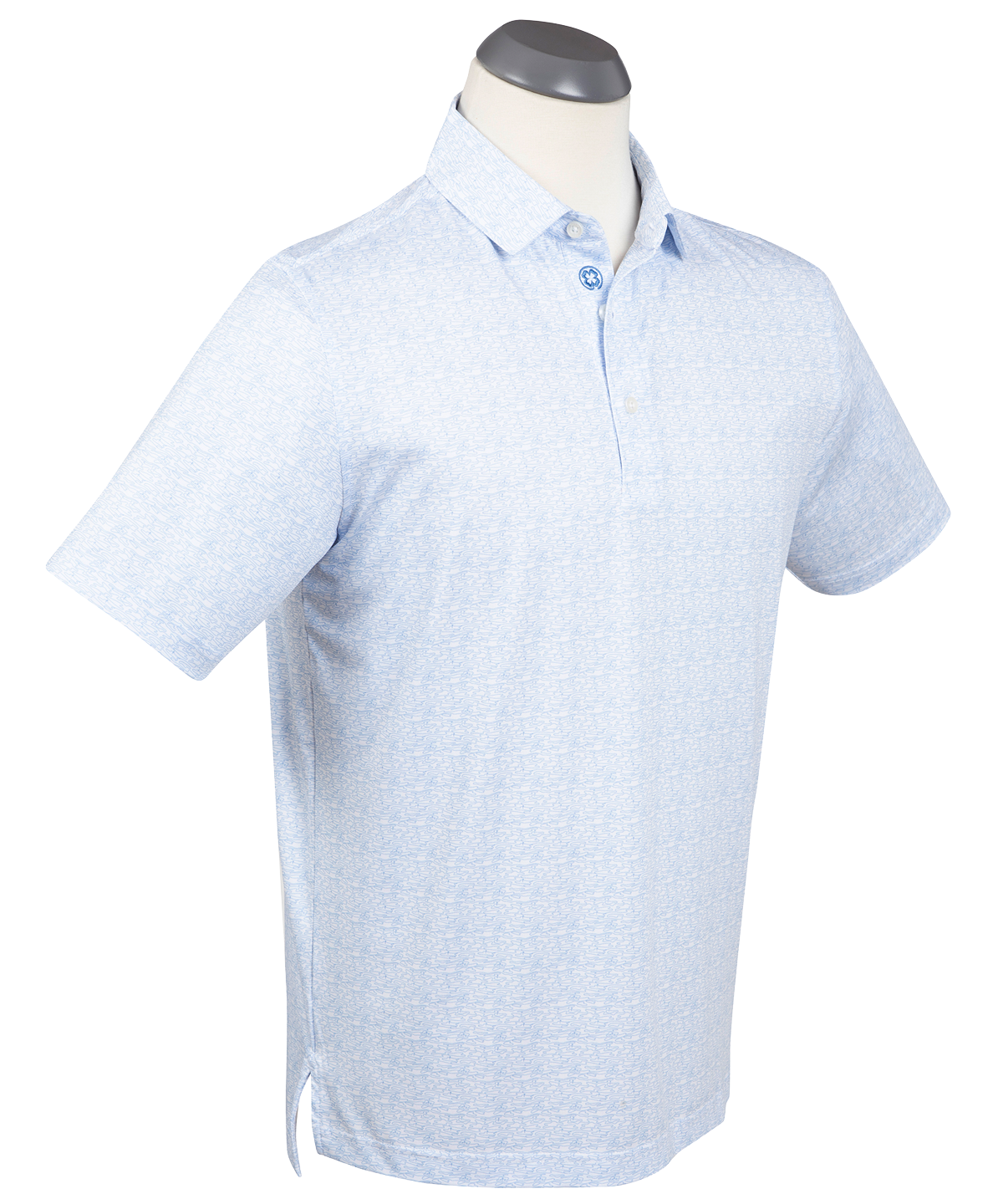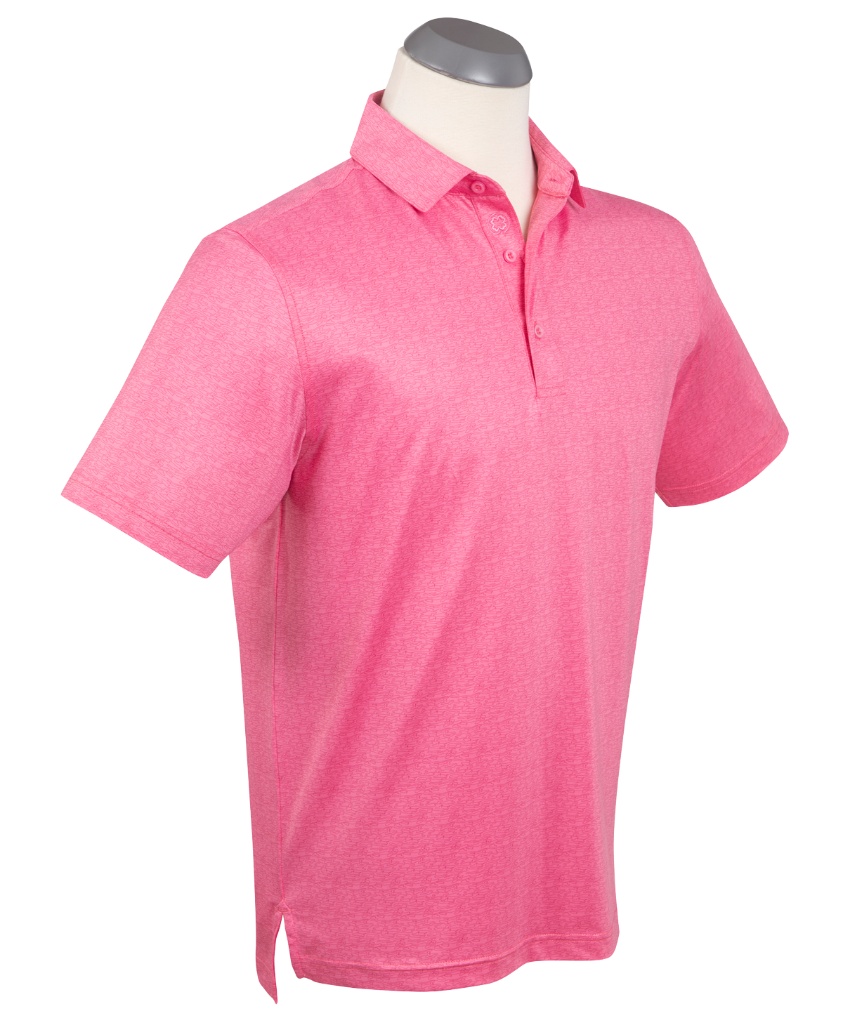 A modern performance golf polo finished with a subtle contour print and smooth stretch jersey comfort. Lightweight and breathable, this moisture-wicking polo delivers odor control and UPF sun protection in a refined silhouette built for warm-weather play and everyday wear.