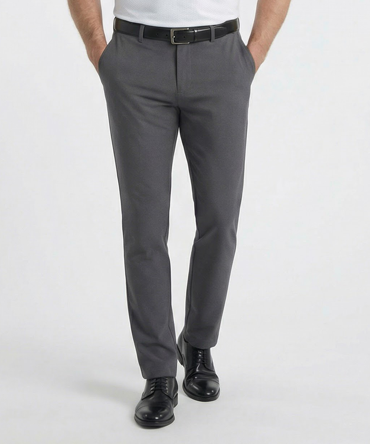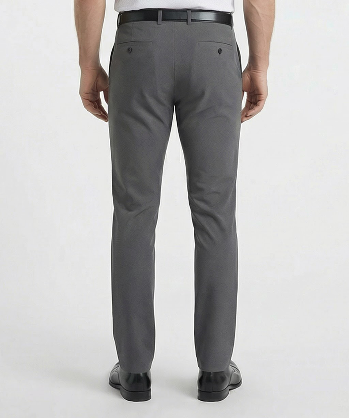 When you find a pair of pants you love, it's inevitable that you'll want another pair just like them. In this case, you can't have too many. This flat-front performance trouser has an elevated silhouette with a design that allows it to be custom tailored for a perfect fit. Seams and waistband have a bit of extra fabric that allows them to be expanded as needed. The fabric has built-in stretch to keep them comfortable for an 18-hour day, and it pairs perfectly with casual looks and sport coats alike. 95% poly, 5% spandex. Machine wash. Imported.