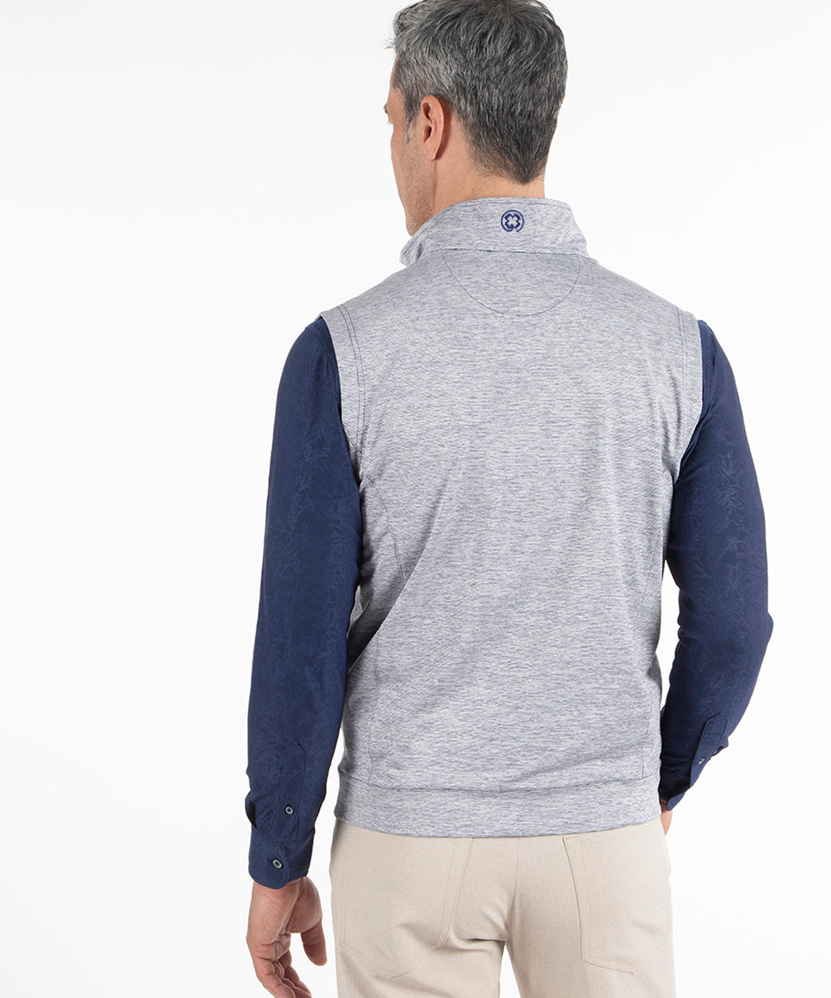 A Bobby Jones tonal clover logo is embroidered on the back collar, adding a subtle signature touch to this versatile performance vest.